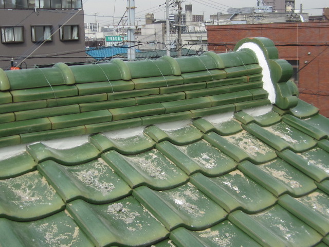 ![]() 瓦屋根シックイ塗替え工事:下地からメクリやり替え |